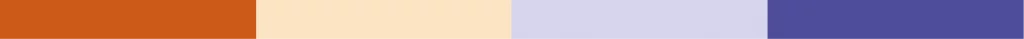 Une palette de couleur à la fois chaleureuse (beige chaud), créative (orange), douce (bleu doux) et rassurante (bleu/violet foncé)
